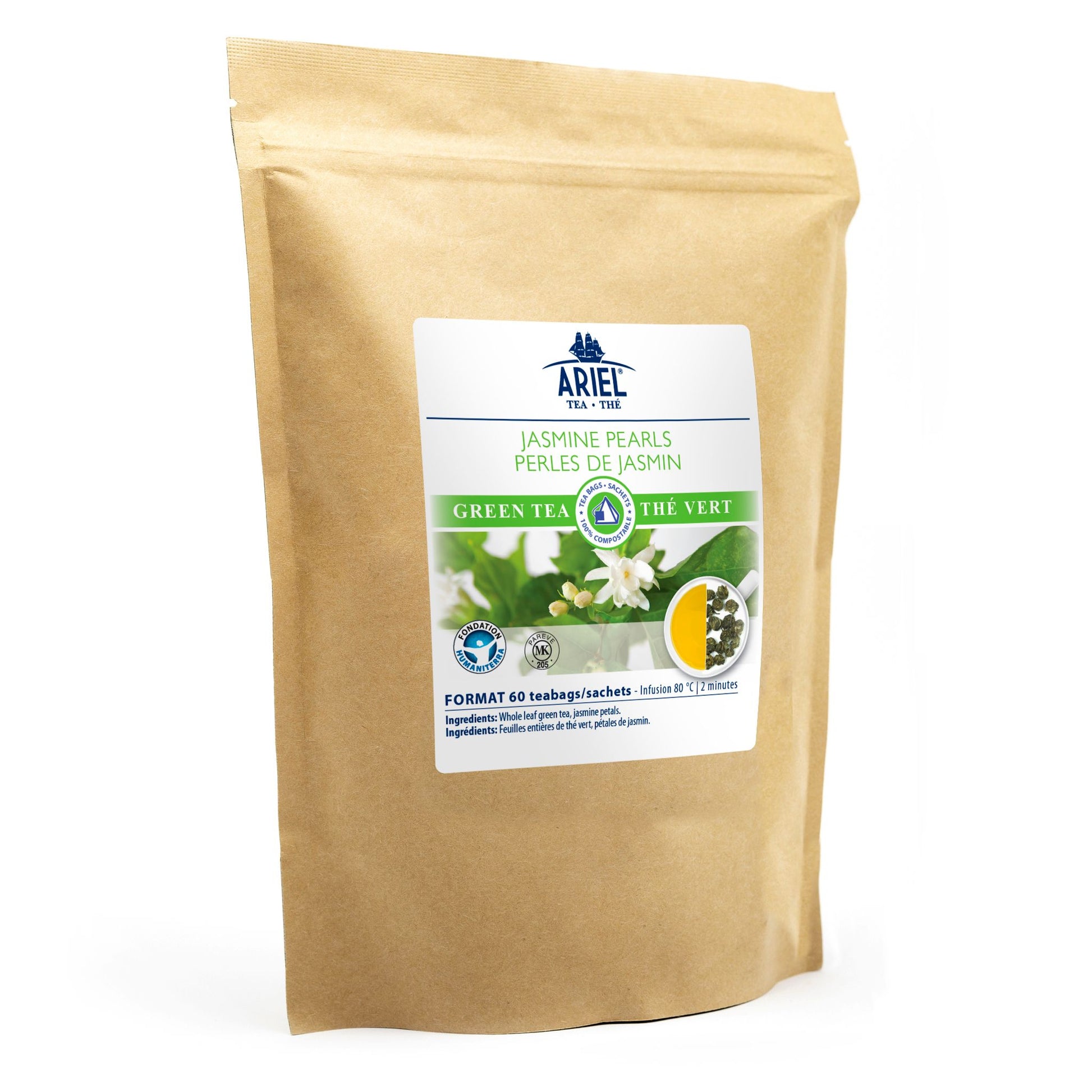 Indulge in the timeless elegance of Jasmine Pearl Green Tea, a masterpiece of tea craftsmanship. Handpicked Chinese green tea leaves are meticulously rolled into delicate pearls and infused with the enchanting aroma of fresh jasmine blooms. This centuries-old technique involves layering tea leaves with jasmine flowers overnight, allowing the leaves to naturally absorb their fragrance. The process is repeated several times to ensure the tea captures the full depth of the jasmine aroma, creating a truly luxurious experience.